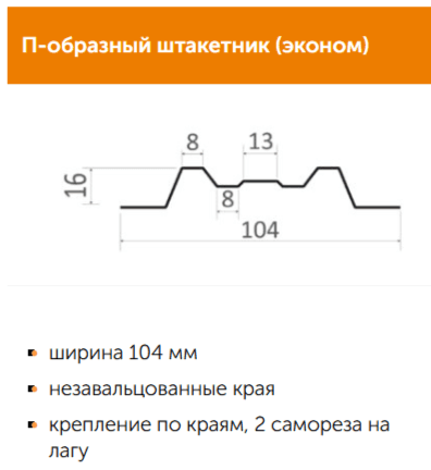 Бюджетное решение из оцинкованной стали, толщиной 0,35 мм. Вариант покрытия – на выбор: оттенки RAL, цвета-антики, Printech (под дерево, камень).