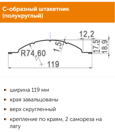 Полукруглый металлический С-образный штакетник производим из оцинкованной стали 0,5 мм. Товар стал победителем на выставке MosBuild/WorldBuild Moscow 2017 в номинации «Новинка года».