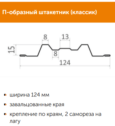 Евроштакетник П-образный «Стандарт»